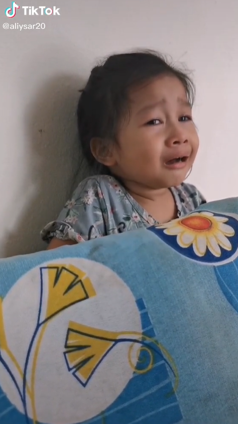Menerusi video tersebut, kelihatan seorang kanak-kanak perempuan sedang menangis teresak-esak di dalam rumahnya.