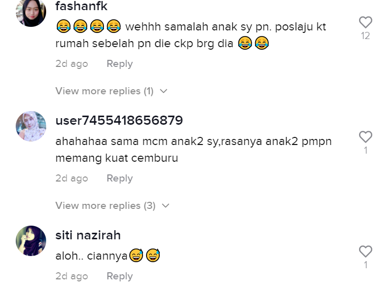 "Ahahaha sama macam anak-anak saya, memang kuat cemburu" – Netizen