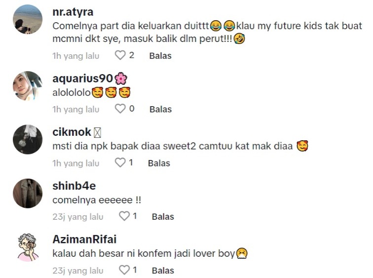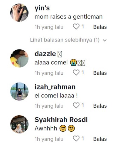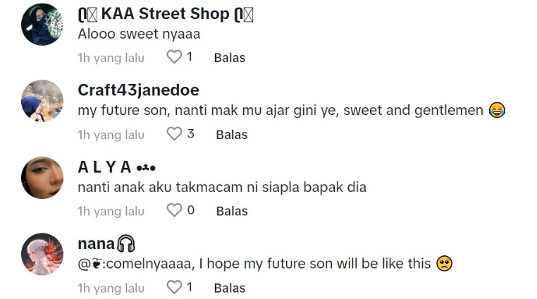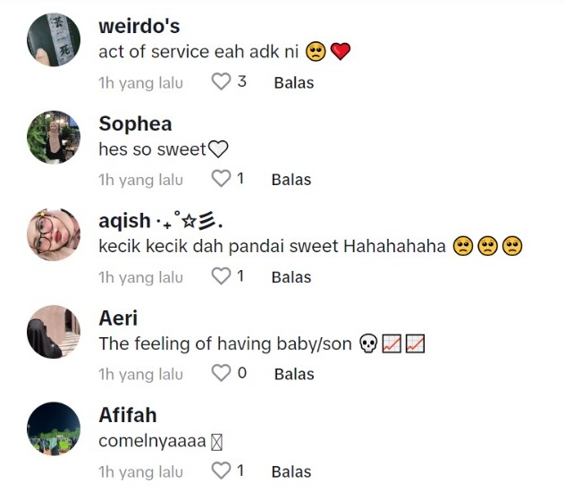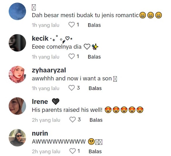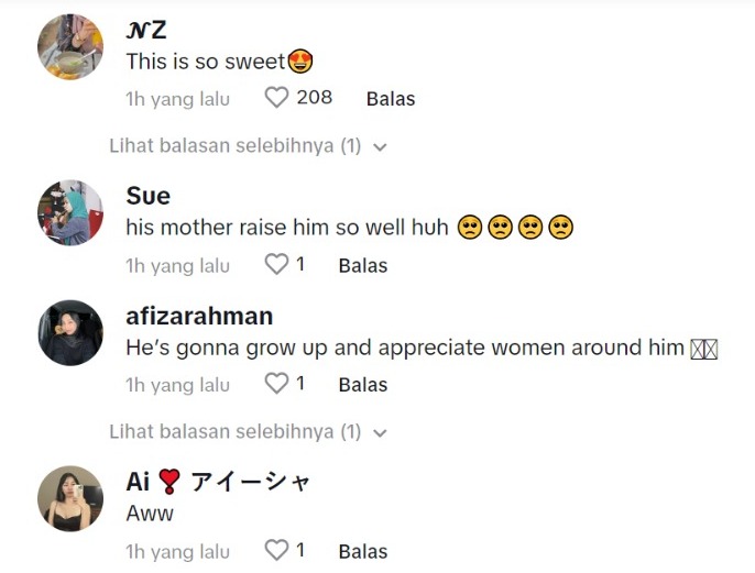 Dalam pada itu, tinjauan di ruangan komen mendapati rata-rata netizen turut memuji tingkah laku budak itu yang dinilai amat sweet dan comel.
