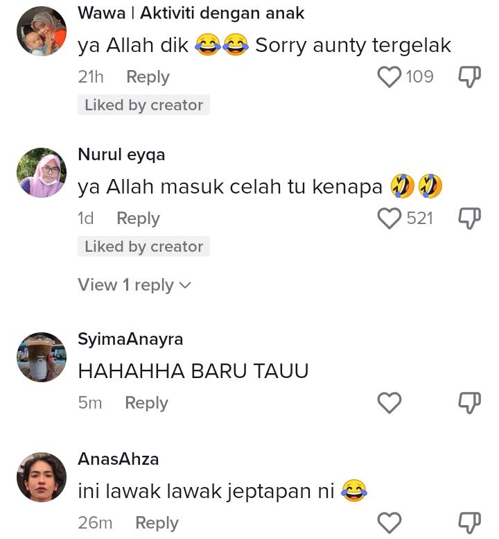 Berikut di bawah merupakan antara komen menarik daripada warganet di TikTok: