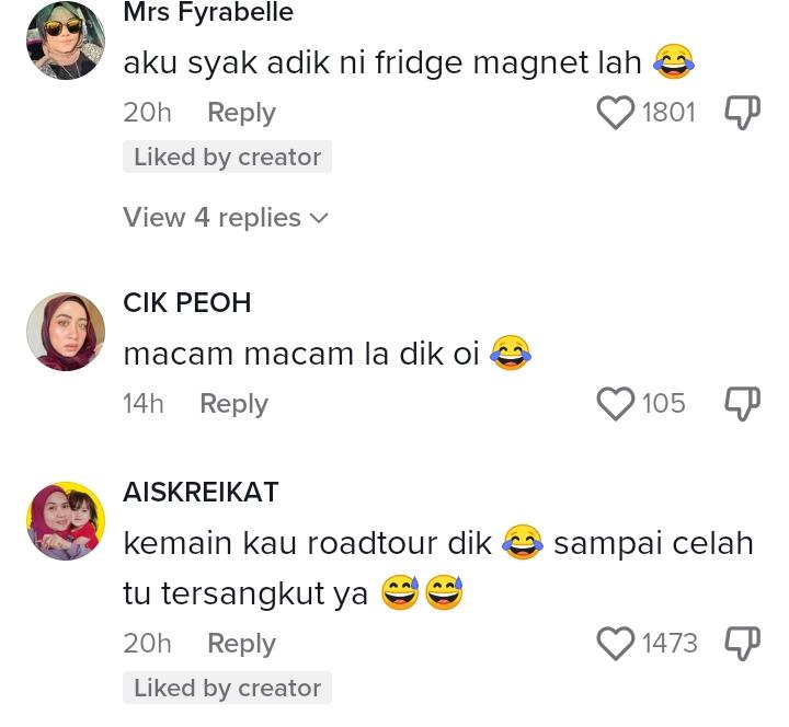 "Confirm jadi bualan tiap kali raya dik, 'dulu kat peti sejuk tu la kepala kau tersangkut' haha" – Warganet