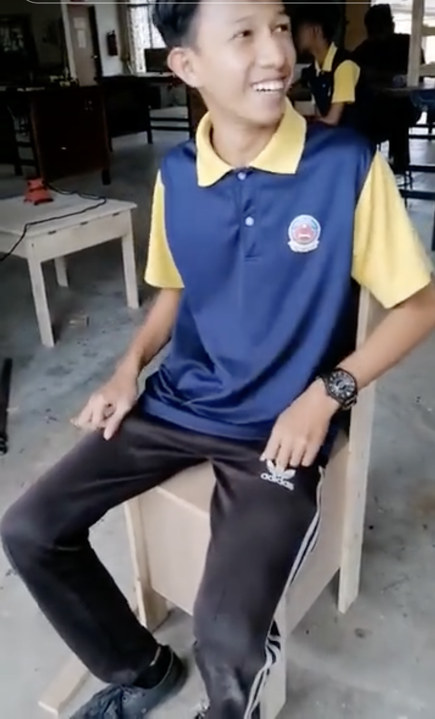 Menerusi video tersebut, kelihatan seorang guru berkongsi ciptaan para pelajarnya menghasilkan perabot pelbagai guna.