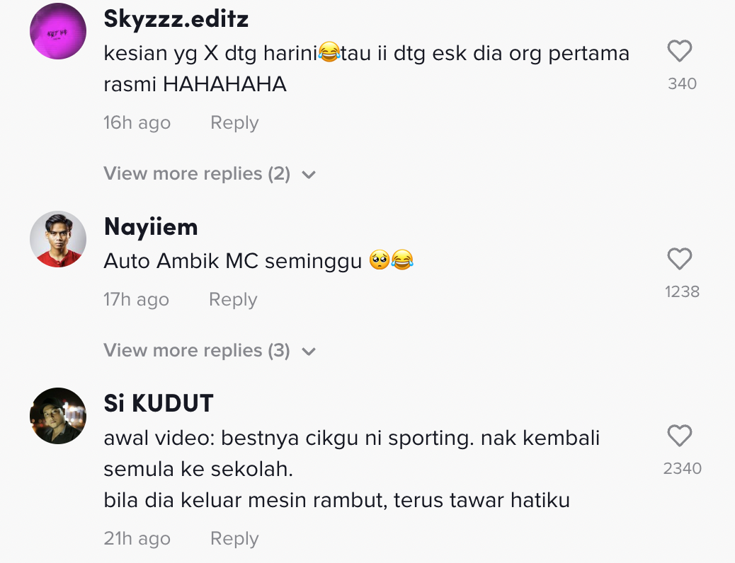 Sementara itu, tinjauan di ruangan komen mendapati rata-rata netizen turut memberikan reaksi mereka dan ada juga yang berkongsi pengalaman semasa di zaman sekolah.