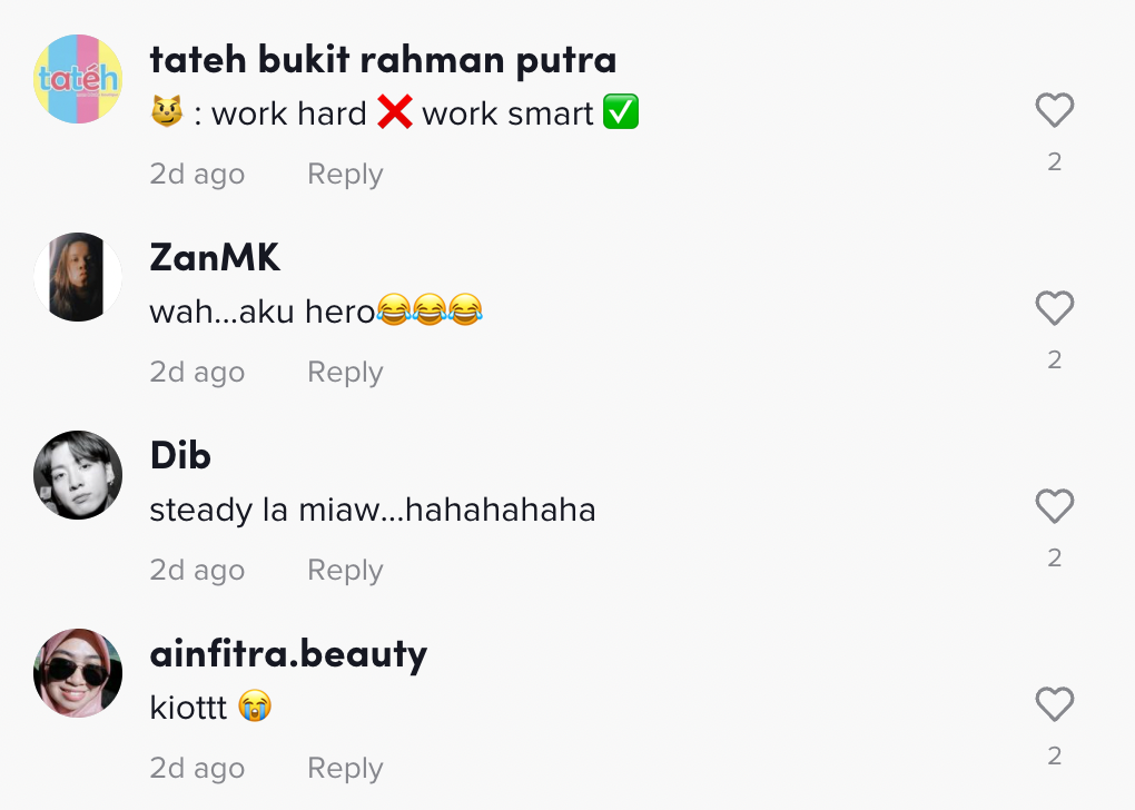 Berikut di bawah adalah antara komen menarik daripada netizen di TikTok: