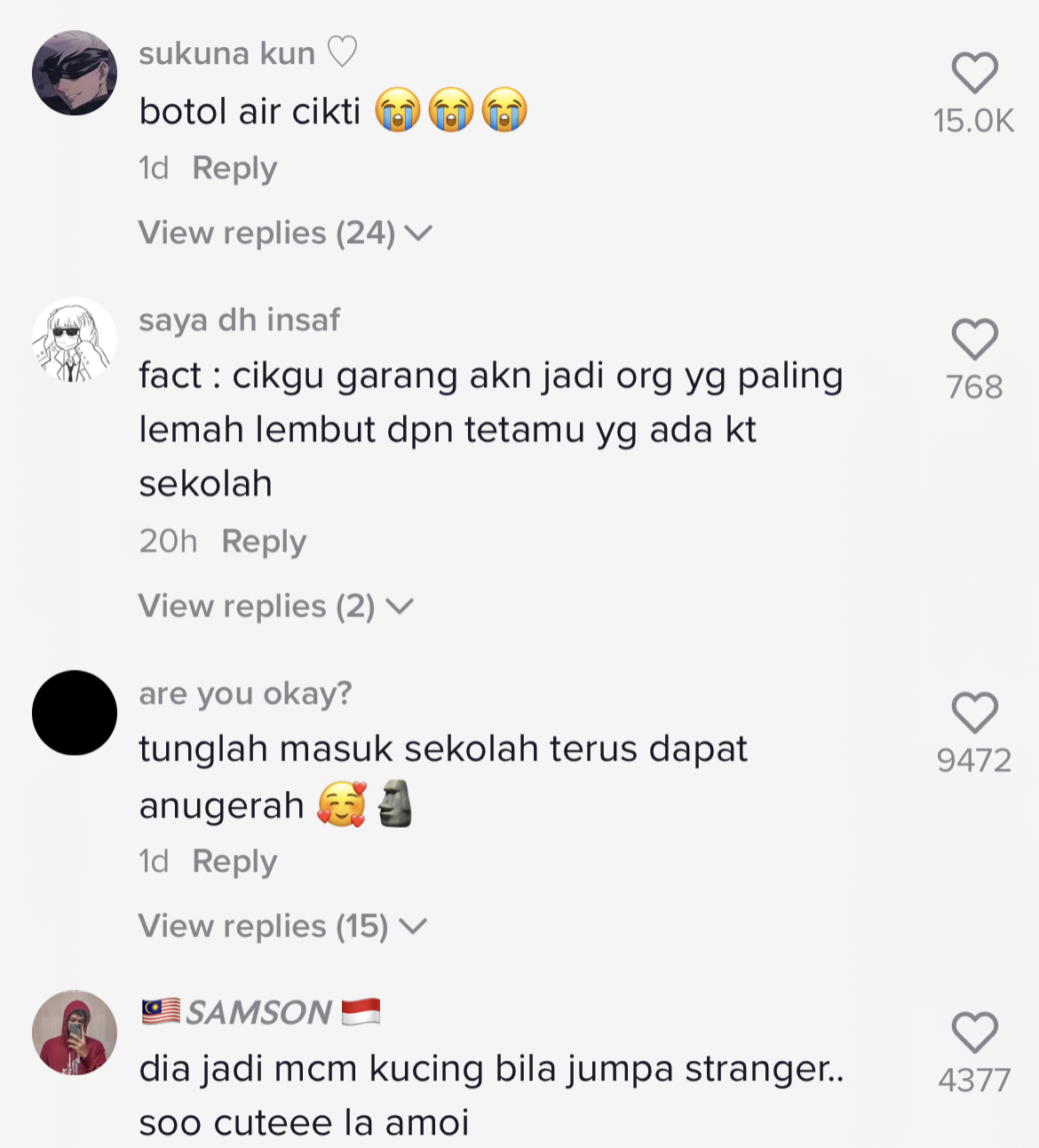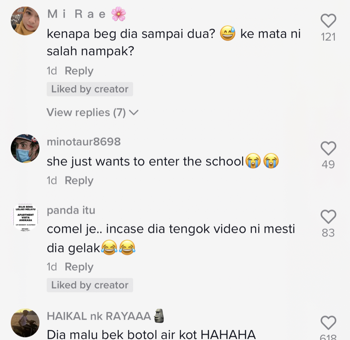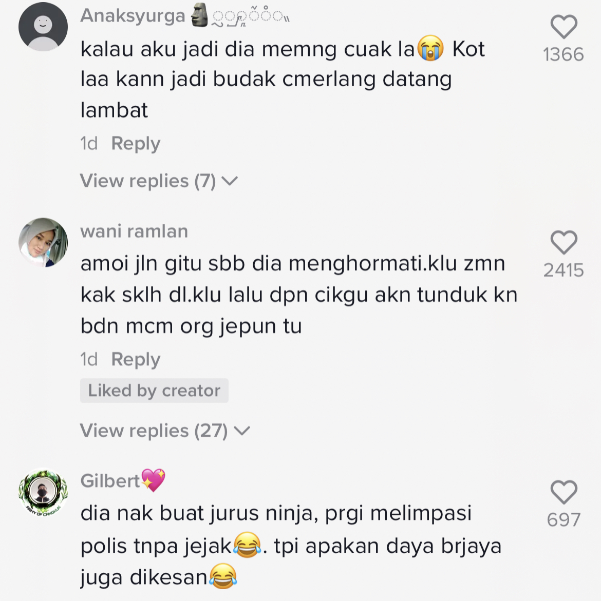 Berikut di bawah merupakan antara komen menarik daripada netizen di TikTok: