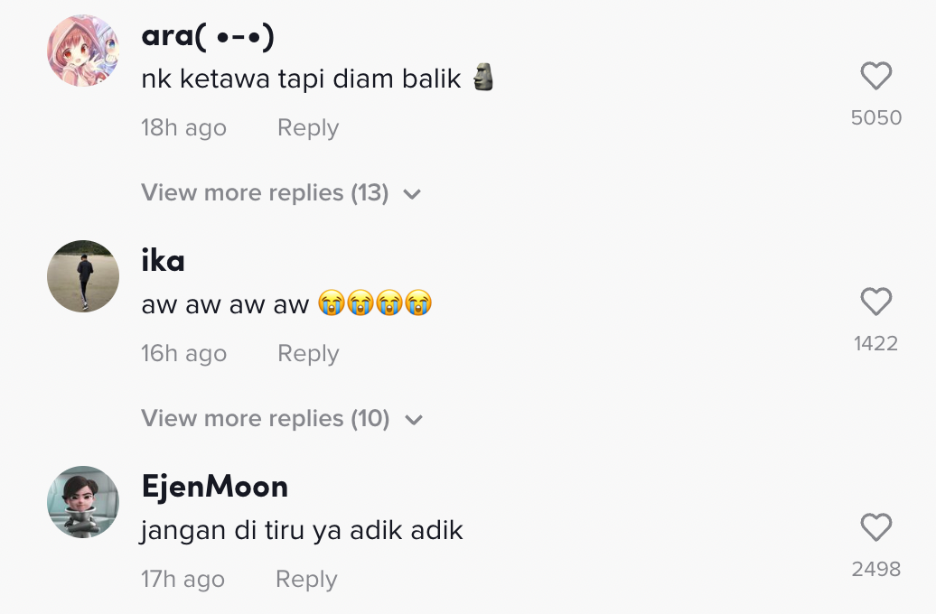 Berikut di bawah adalah antara komen daripada netizen di TikTok: