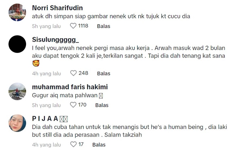 Dalam pada itu, tinjauan di ruangan komen mendapati rata-rata netizen turut sebak melihat reaksi lelaki ini.