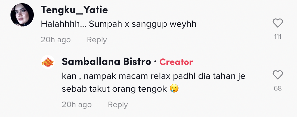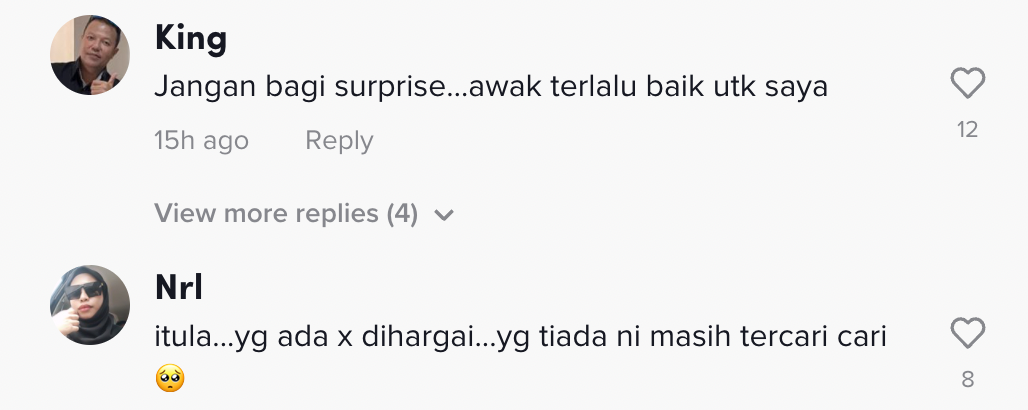Berikut di bawah adalah antara komen daripada netizen di TikTok: