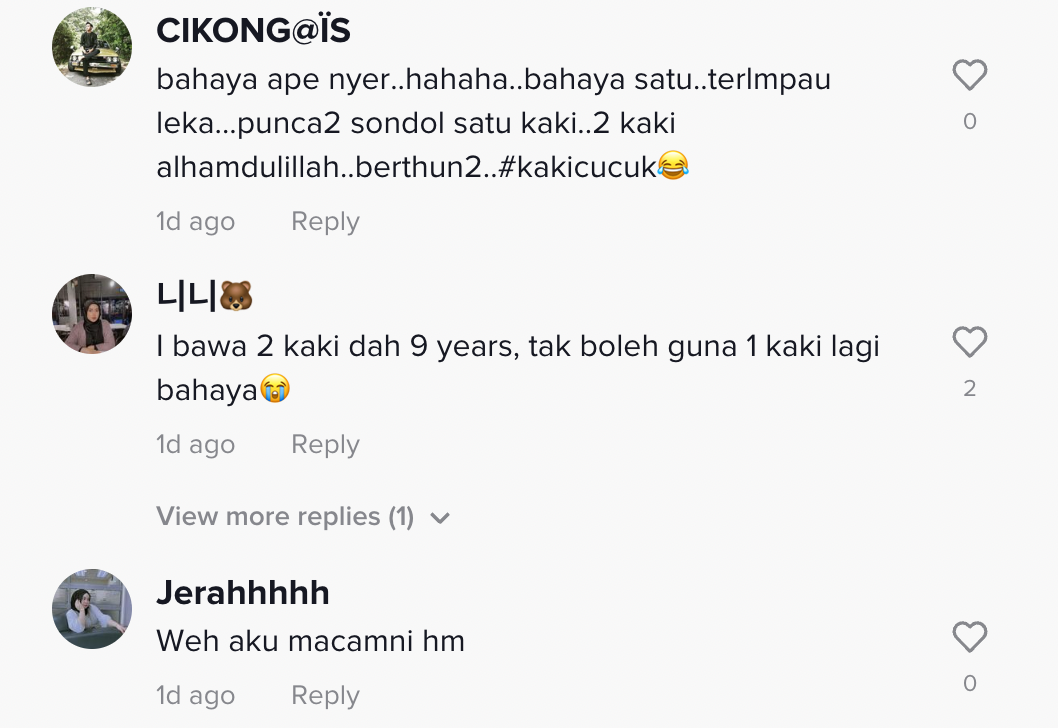 "I bawa 2 kaki dah 9 years, tak boleh guna 1 kaki lagi bahaya" – Netizen