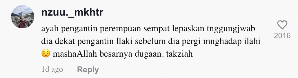 Namun, tular baru-baru ini sebuah video di TikTok yang menyedihkan apabila majlis perkahwinan bertukar menjadi majlis tahlil kerana bapa pengantin meninggal dunia telah mencuri tumpuan ramai.