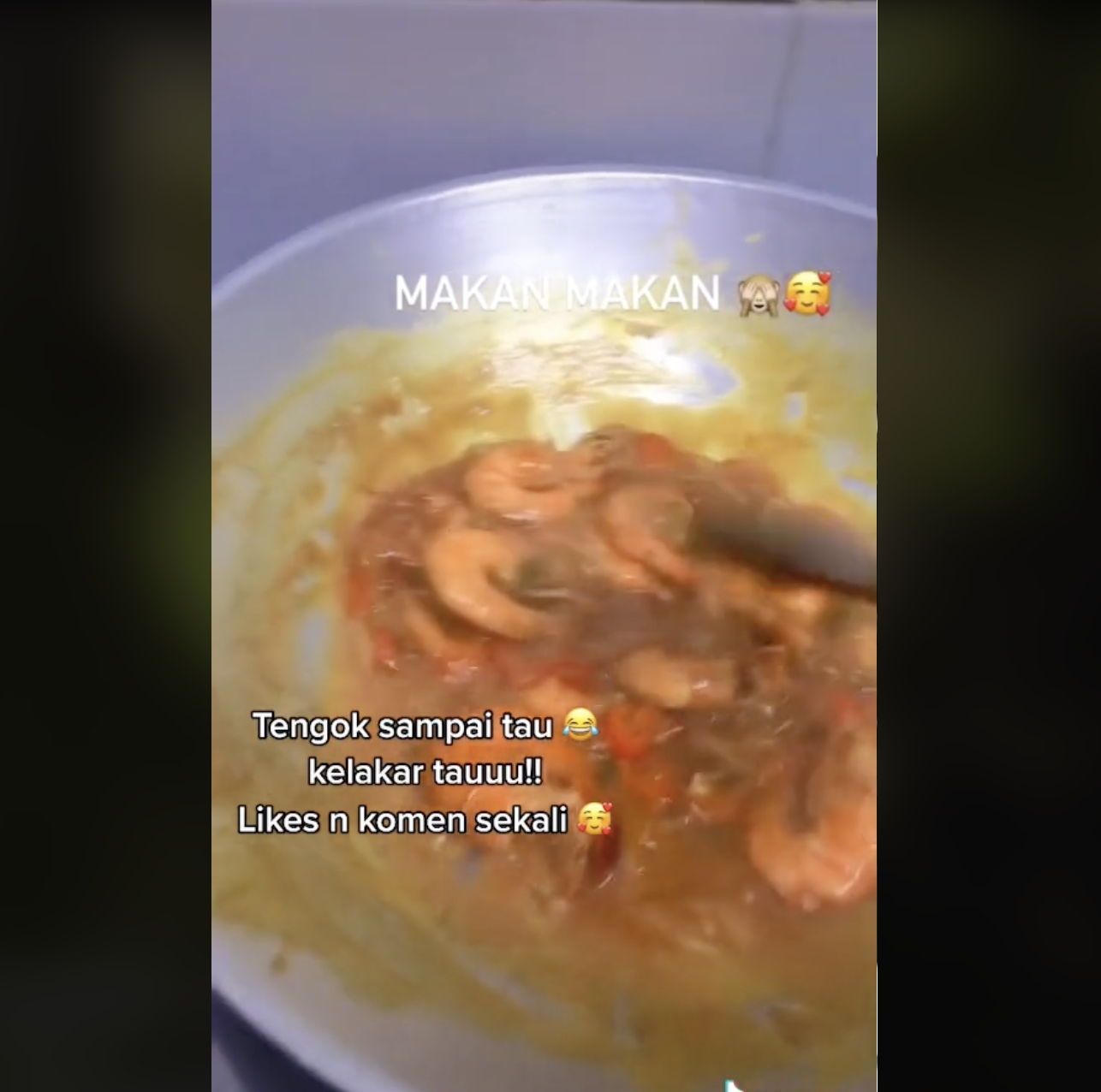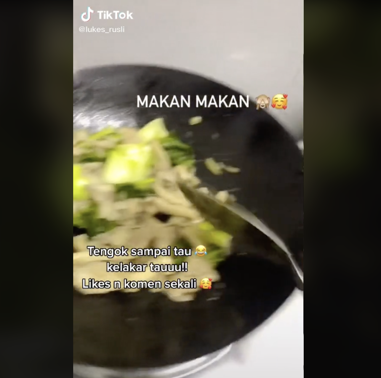 Menerusi video yang dimuat naik oleh @lukes_rusli, kelihatan dia sedang merakam dirinya sedang memasak sayur goreng dan sambal udang sambil mengetuk-ngetuk kuali.