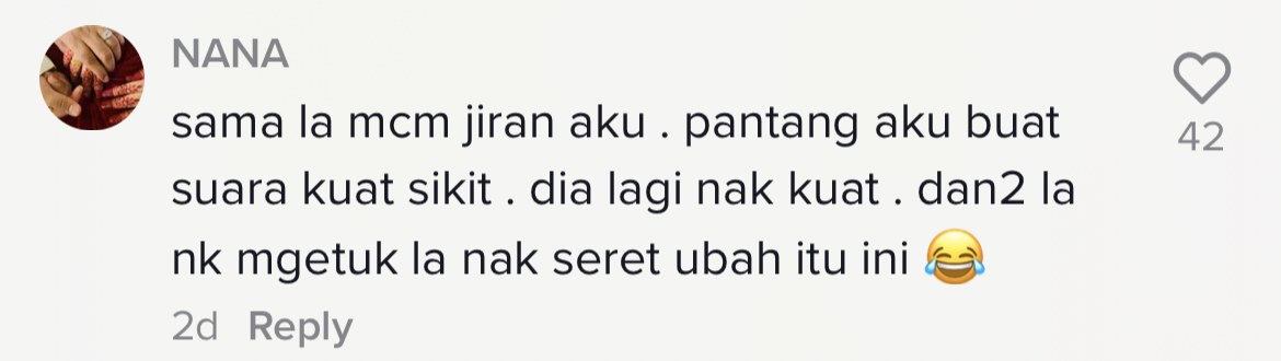 "Sama la macam jiran aku. Pantang aku buat suara kuat sikit, dia lagi nak kuat dan dan la nak mengetuk la nak seret ubah itu ini" – Warganet