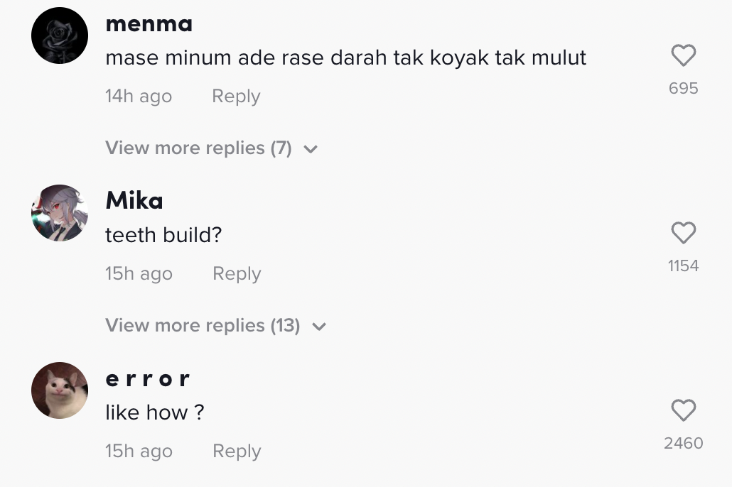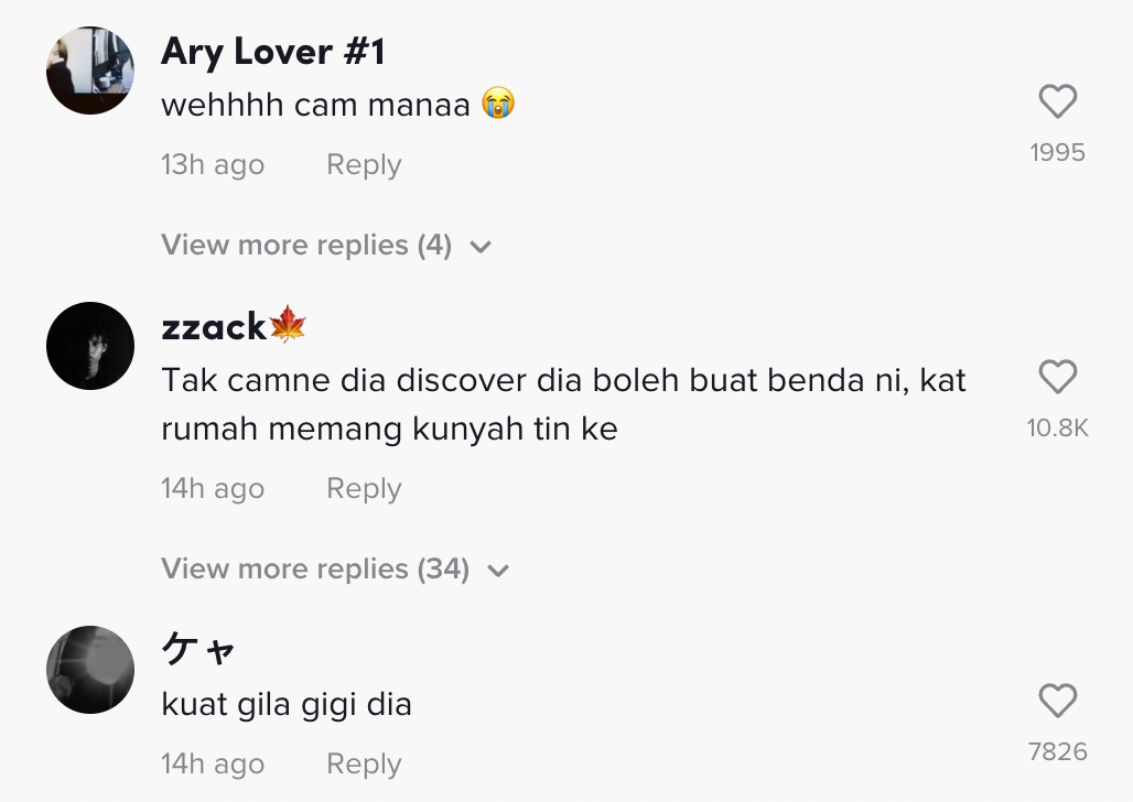 Berikut di bawah adalah antara komen daripada netizen di TikTok: