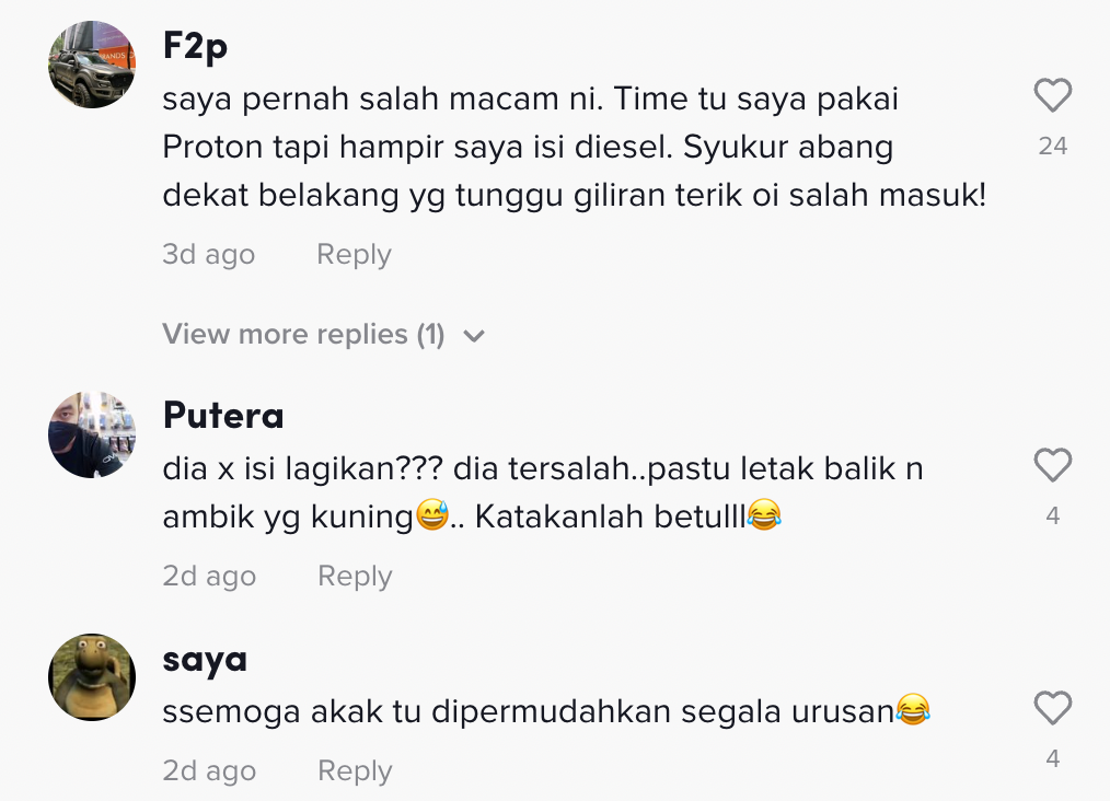 Namun, lain pula dengan video yang tular di TikTok ini apabila seorang wanita mengambil nozel diesel untuk mengisi minyak keretanya telah mencuri perhatian ramai.