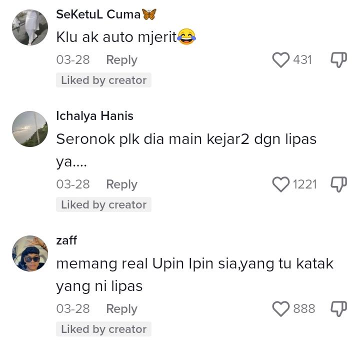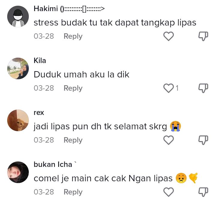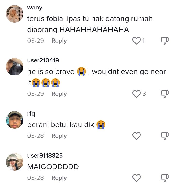 "Seronok pula dia main kejar-kejar dengan lipas ya" – Netizen