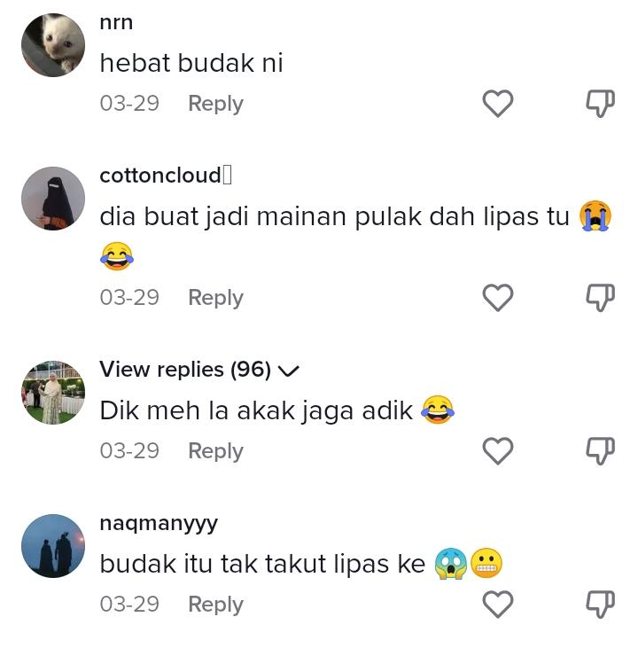 Dalam pada itu, tinjauan di ruangan komen mendapati rata-rata netizen turut terhibur dengan gelagat mereka dan memuji kecomelan mereka.
