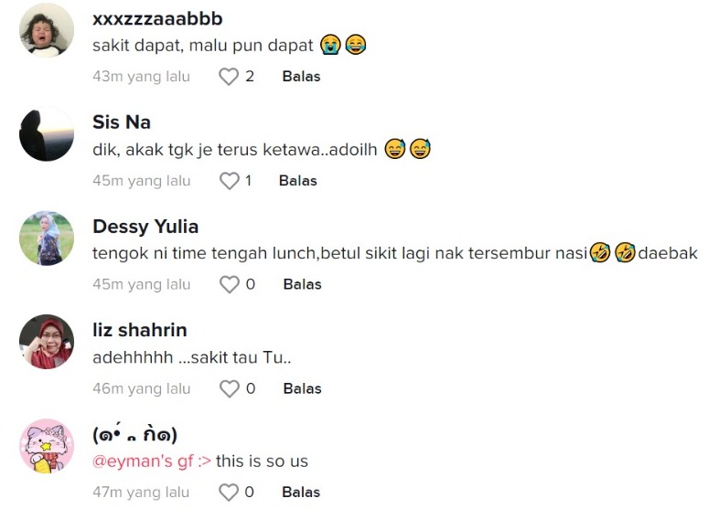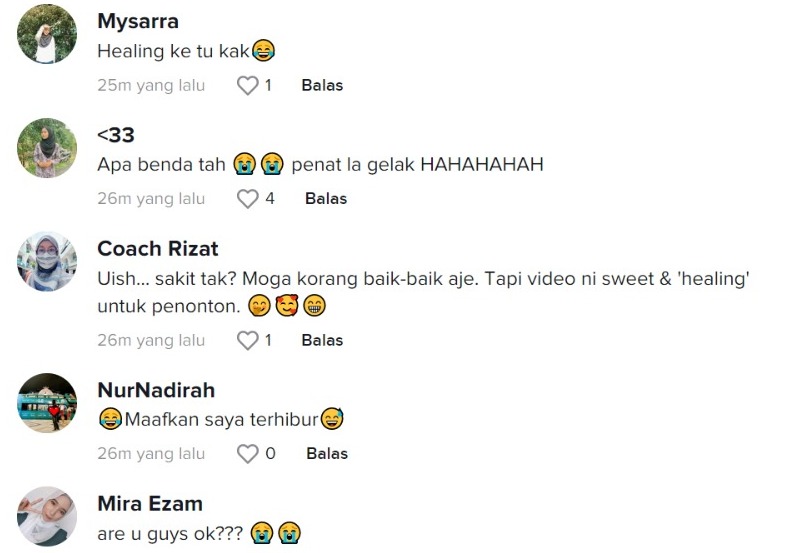 Dalam pada itu, tinjauan di ruangan komen mendapati rata-rata netizen turut bersimpati dengan nasib kedua-kedua gadis itu. Ada juga yang terhibur kerana kejadian spontan tersebut.