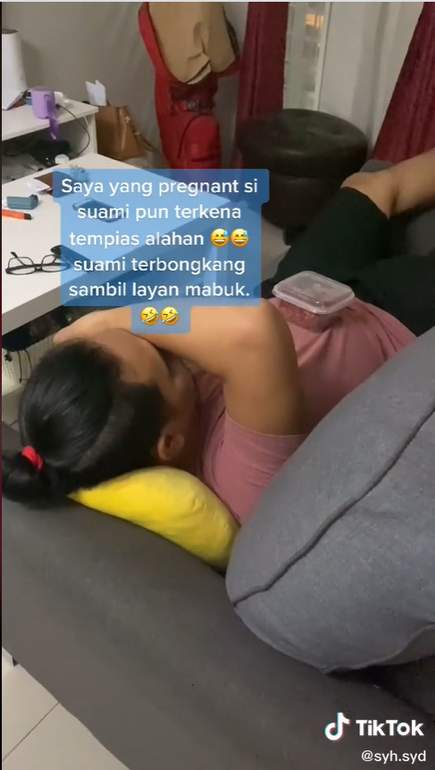 Namun, lain pula dengan video yang tular di TikTok baru-baru ini apabila alahan dan mabuk ibu mengandung itu terbawa pula kepada si suami.