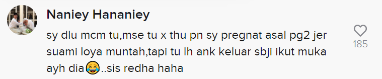 Malah, ada juga yang berkongsi pengalaman sama semasa mereka sedang mengandung. Ada pula yang ingin merasa bagaimana alahan dan mabuk apabila isteri mengandung.