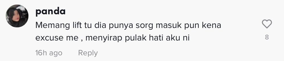 Menerusi video yang dimuat naik oleh @anisnafisaaa di TikTok, rakaman menunjukkan suasana di dalam sebuah lif.