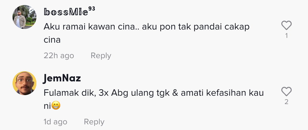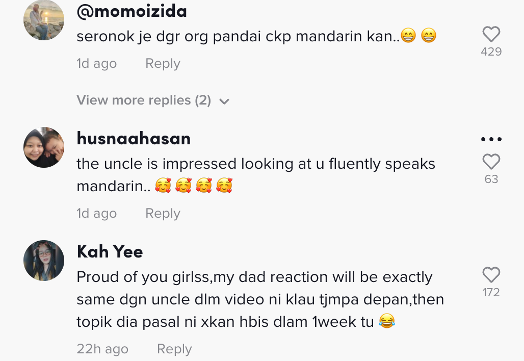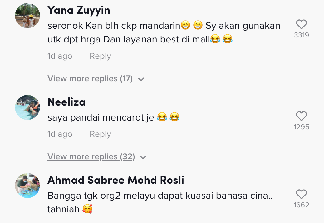 "Bangga tengok orang-orang Melayu dapat kuasai bahasa Cina. Tahniah" – Netizen