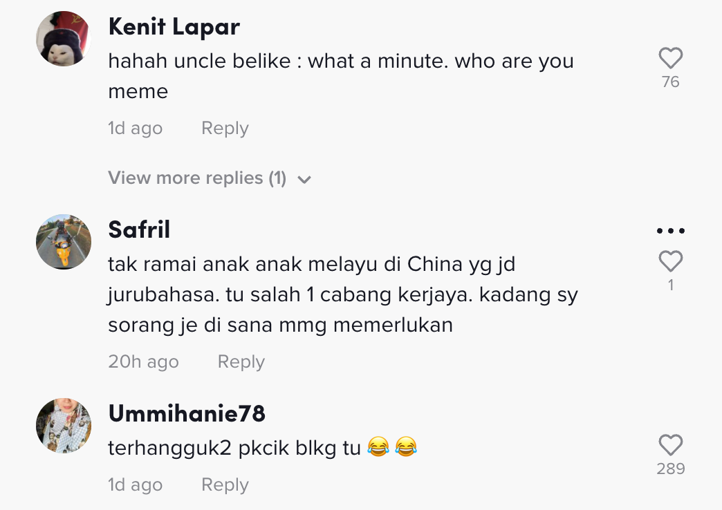 Berikut di bawah adalah antara komen daripada netizen di TikTok: