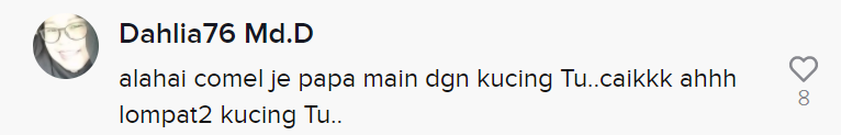 Namun, lain pula dengan video yang tular di TikTok baru-baru ini apabila seorang gadis berkongsi gelagat si ayah dan kucingnya bermain mencuri tumpuan ramai.