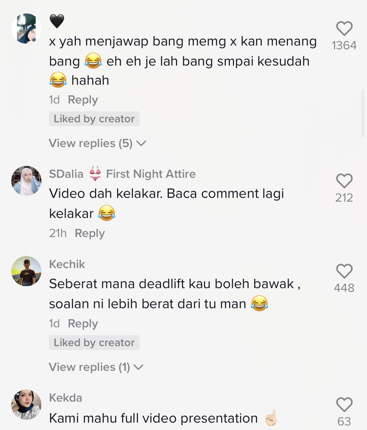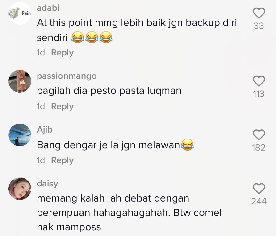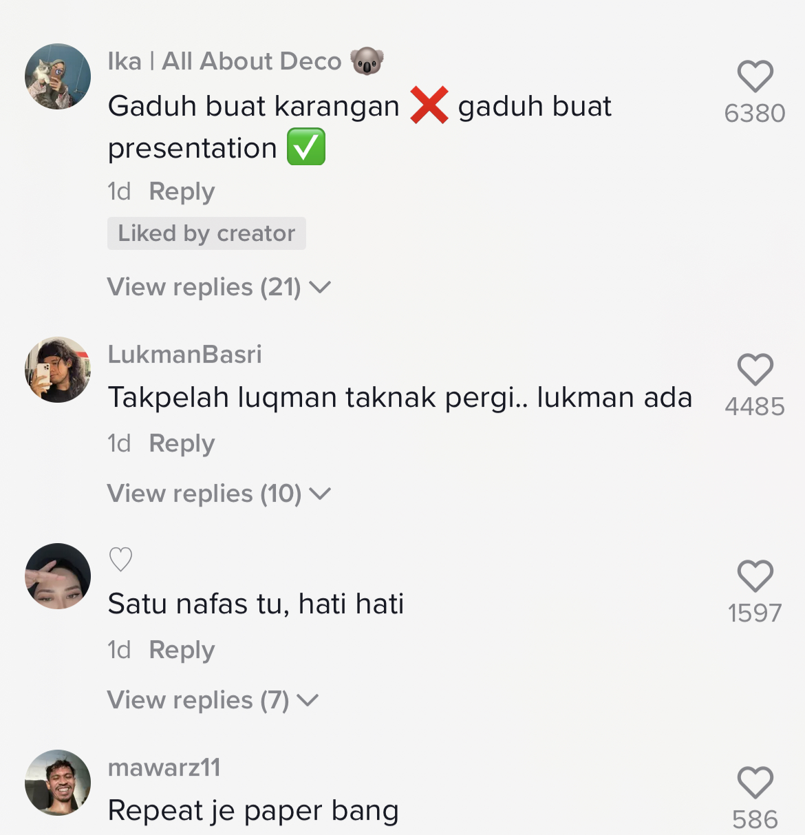 Berikut di bawah merupakan antara komen menarik daripada netizen di TikTok: