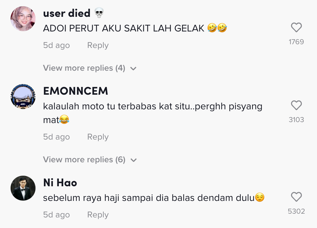 Sementara itu, tinjauan di ruangan komen mendapati rata-rata netizen turut terhibur melihat kejadian tersebut.