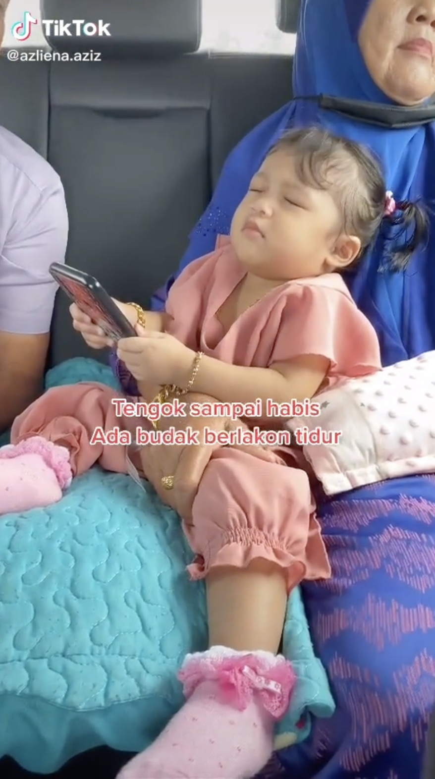 Difahamkan, dia ketika itu bermain telefon atuknya untuk bermain dan dimarahi oleh ibunya. Situasi itu membuatkan budak tersebut berpura-pura untuk tidur bagi mengelakkan kena marah dengan ibunya.