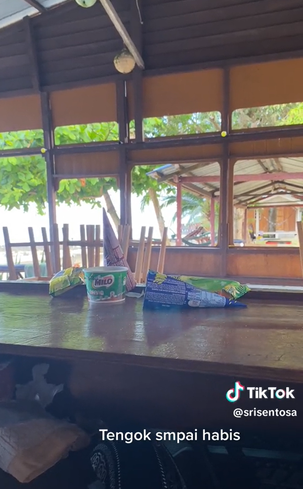 Menerusi video yang dimuat naik oleh @srisentosa di TikTok, kelihatan seorang individu sedang merakam gelagat pelanggan yang membeli aiskrim di chaletnya.