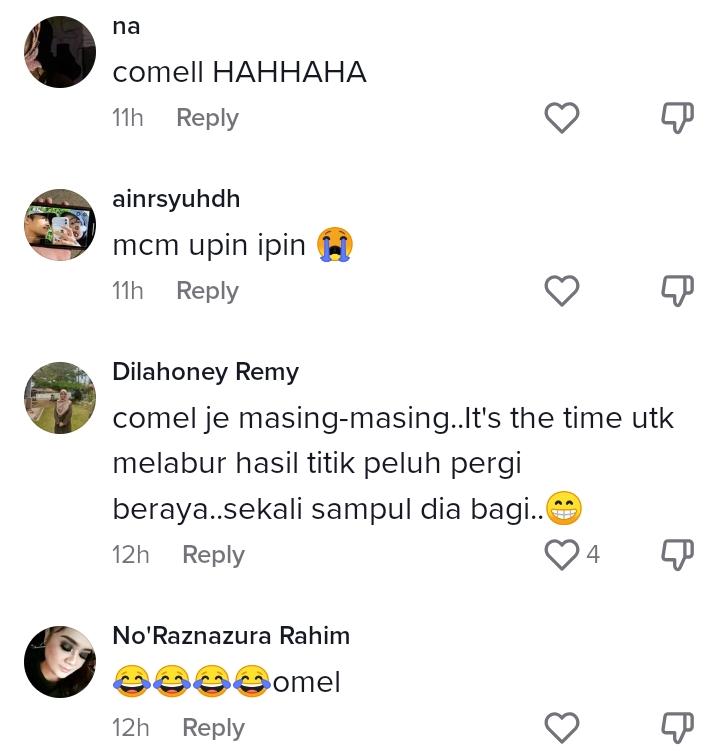 "Comel je masing-masing, it's the time untuk melabur hasil titik peluh pergi beraya, sekali sampul dia bagi haha" – Netizen