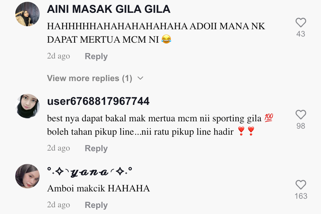 Berikut di bawah adalah antara komen menarik daripada netizen di TikTok: