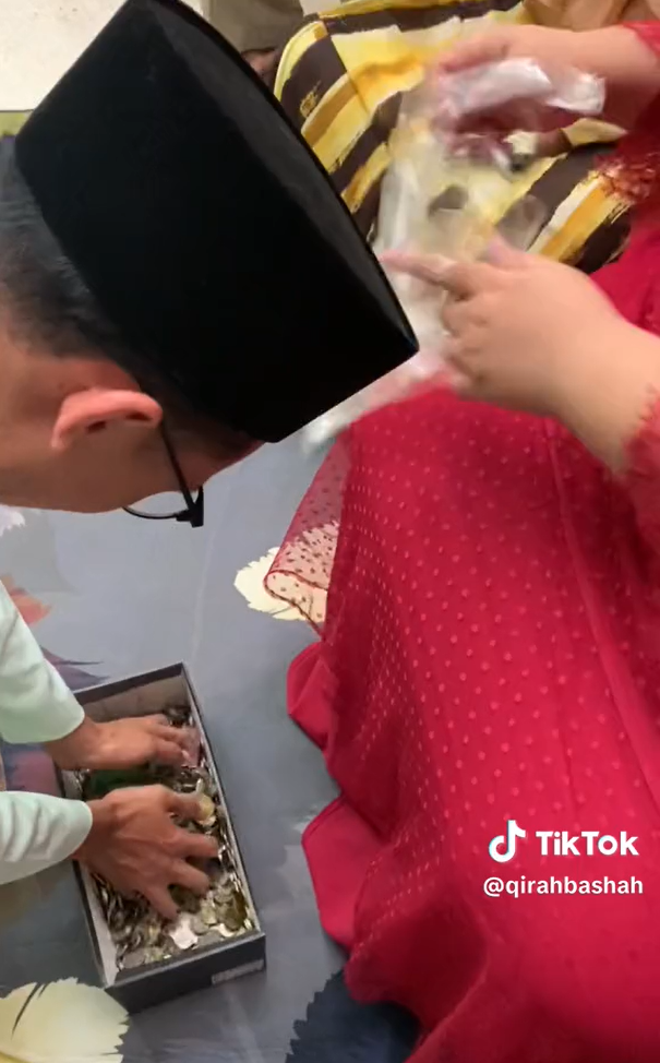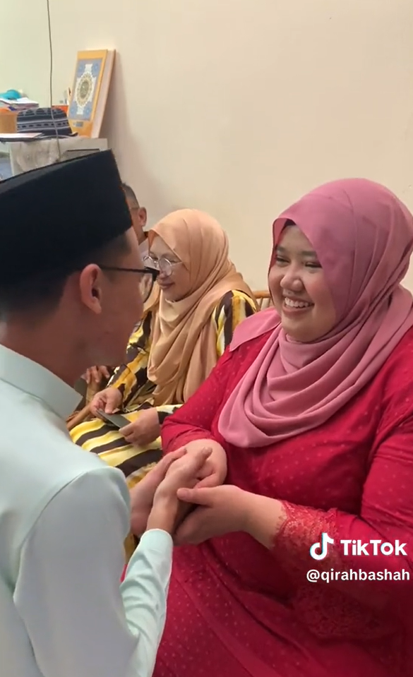 Menerusi video yang dimuat naik oleh @qirahbashah di TikTok, kelihatan sebuah keluarga sedang bersalaman untuk bermaaafan sebelum memberi duit raya pada pagi raya di ruang tamu rumah mereka.