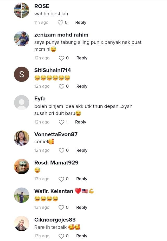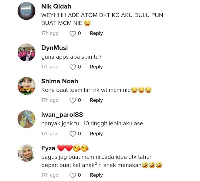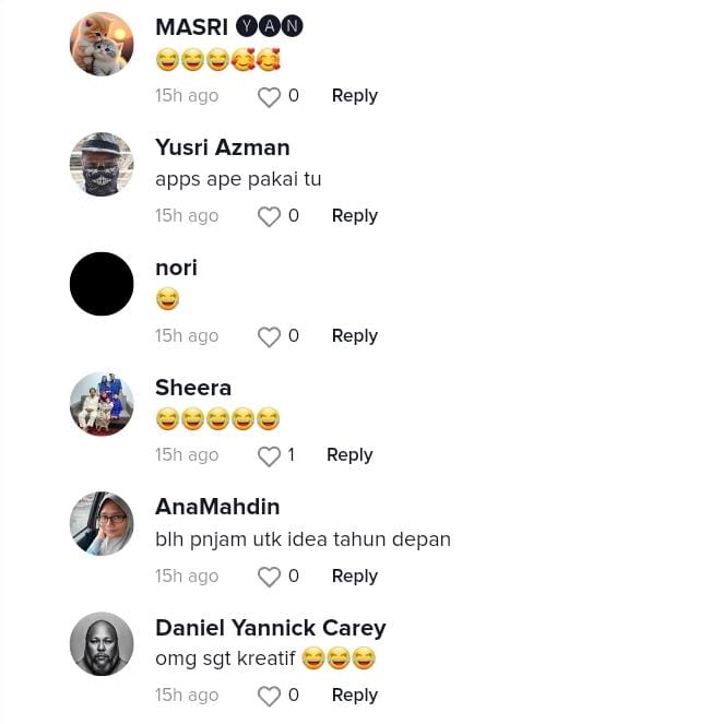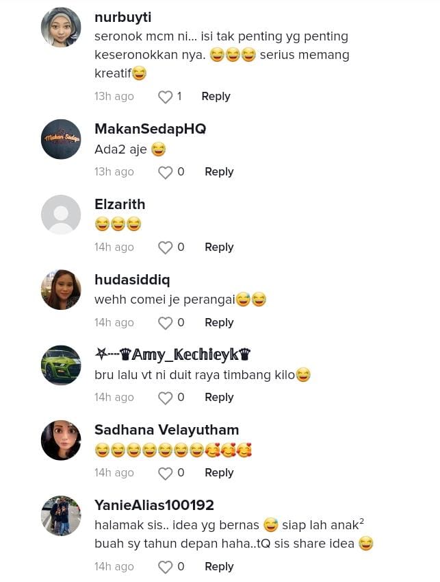 Dalam pada itu, tinjauan di ruangan komen mendapati rata-rata warganet turut terhibur dengan gelagat mereka sekeluarga dan memberi komen yang mencuit hati mengenai permainan tersebut. Ada juga yang kagum dengan idea wanita itu yang dianggap amat kreatif dan rare.