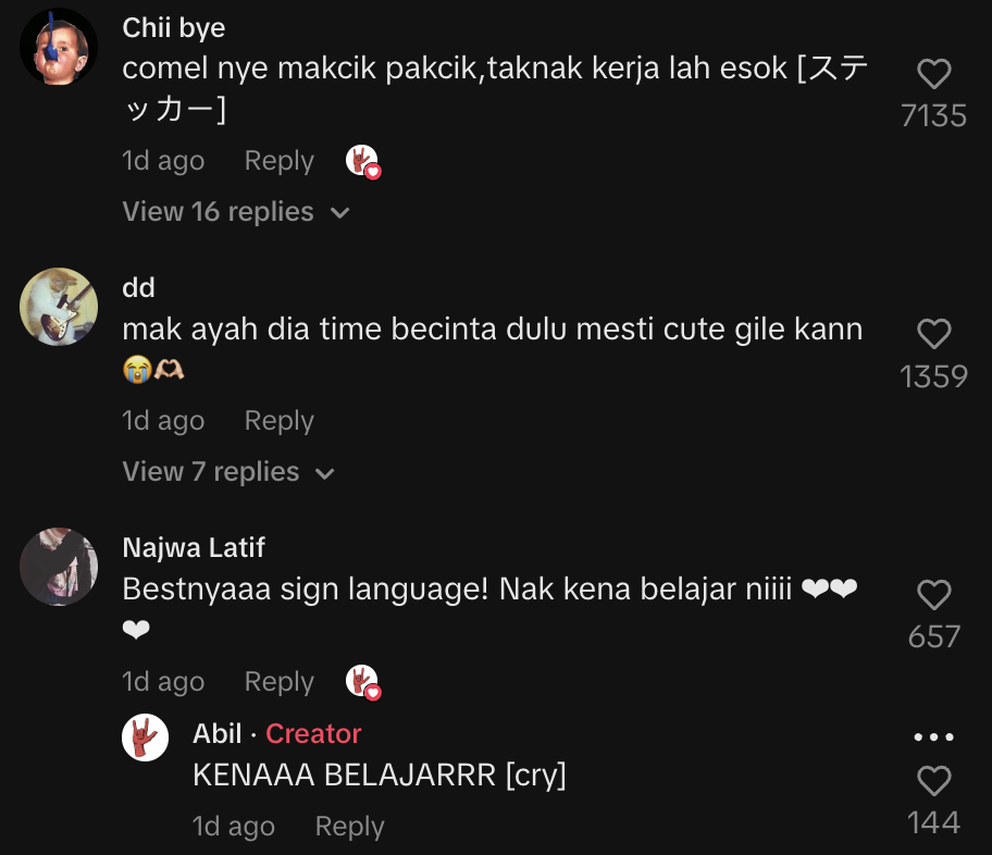 Susulan tularnya video itu yang kini telah mencecah sehingga 1.4M tontonan di TikTok, rata-rata netizen terhibur dengan gelagat mereka yang comel