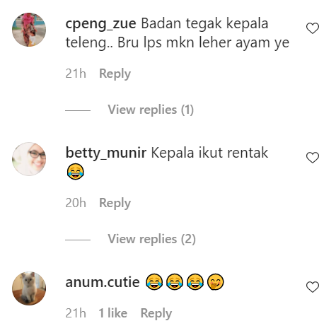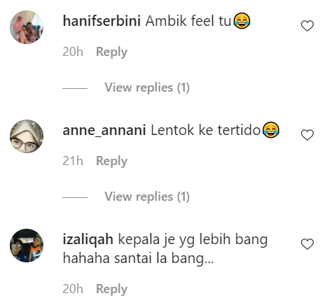 Berikut di bawah adalah antara komen menarik daripada netizen di Instagram: