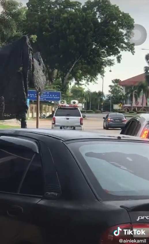 Menerusi video tersebut, kelihatan sebuah kenderaan dipercayai milik KKM berada di tepi jalan untuk memberikan sesuatu pesanan.