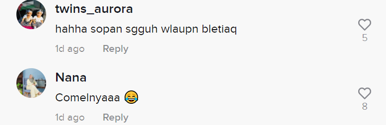 Berikut di bawah adalah antara komen menarik daripada netizen di TikTok: