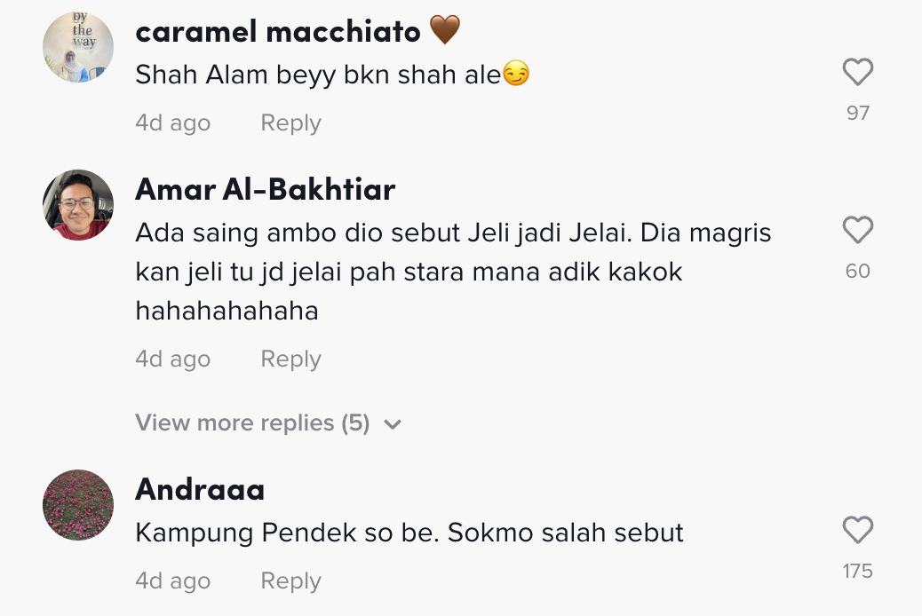 Dalam pada itu, tinjauan di ruangan komen mendapati rata-rata netizen turut mengusiknya untuk menyebut nama-nama tempat yang betul.