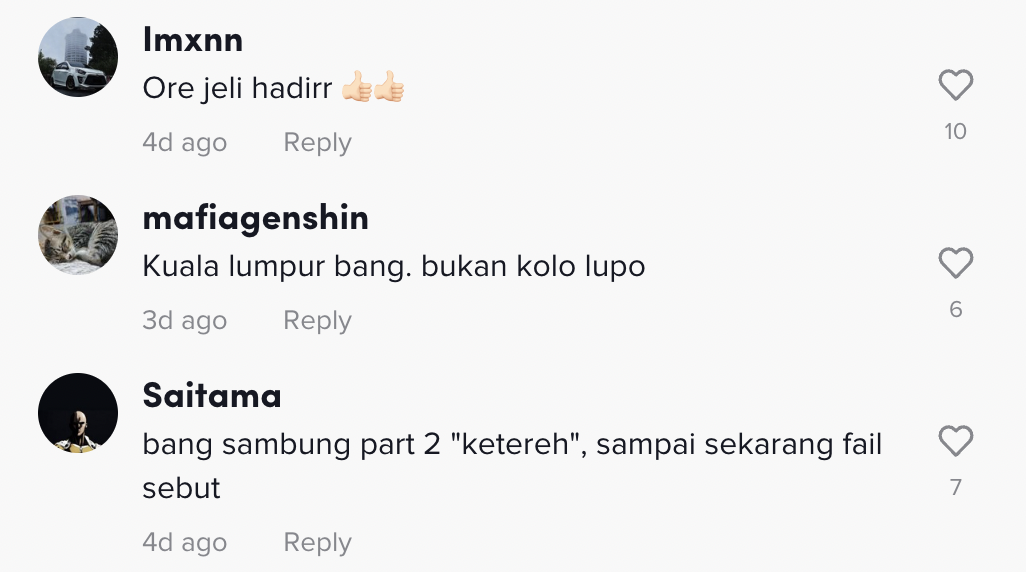 Berikut di bawah adalah antara komen daripada netizen di TikTok: