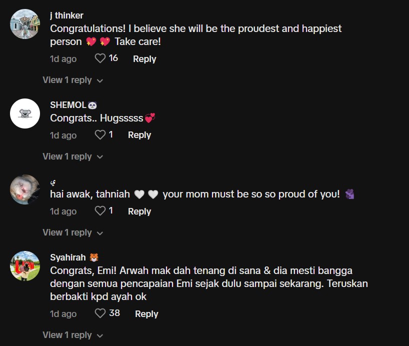 "Tahniah awaknya, your mum must be very proud of you" – Netizen
