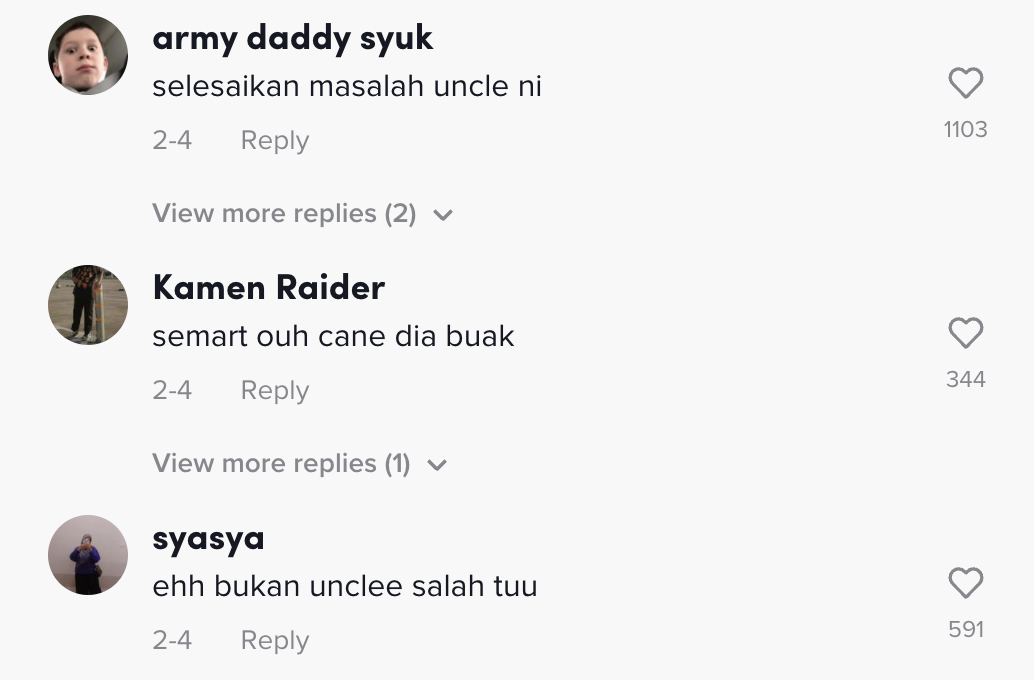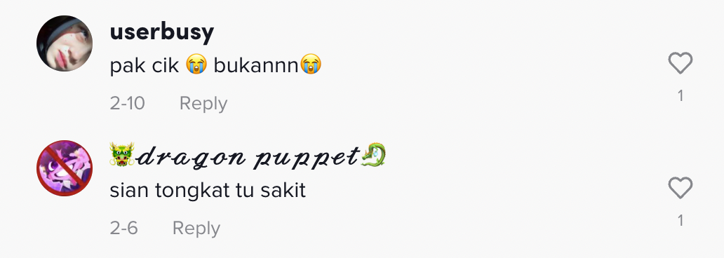 Berikut di bawah adalah antara komen daripada netizen di TikTok: