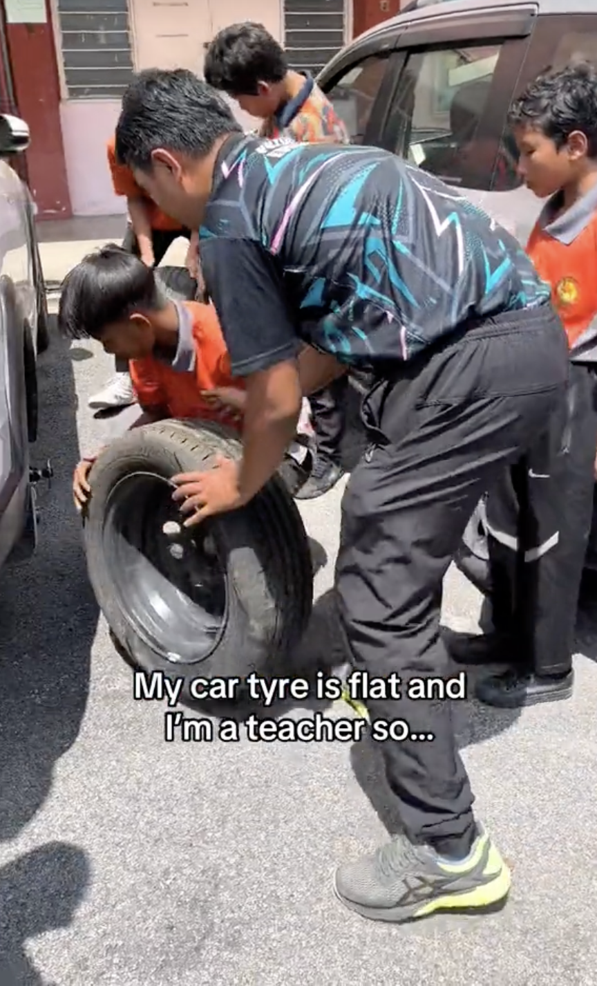 Baru-baru ini, seorang guru berkongsi momen manis apabila dia dibantu anak-anak muridnya yang tolong menukar tayar keretanya.