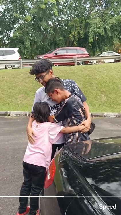 Menerusi video tersebut, kelihatan kedua-dua adik pelajar tersebut tidak dapat menahan emosi apabila terpaksa berpisah dan berjauhan dengan abang mereka.