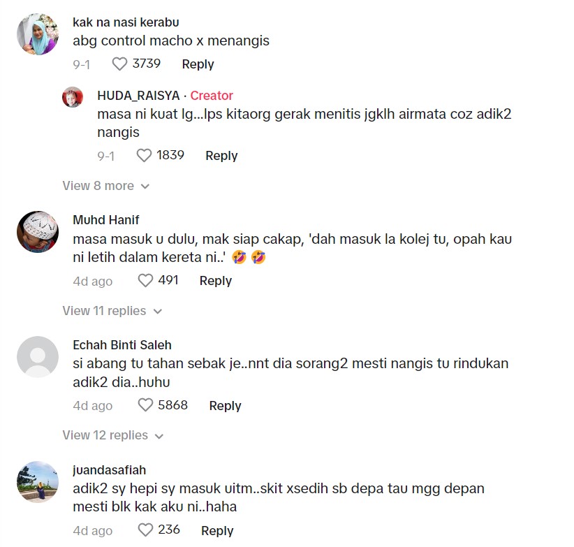 Itulah yang dapat dilihat menerusi sebuah video tular di TikTok memaparkan momen dua orang adik menghantar abang mereka sambung belajar.
