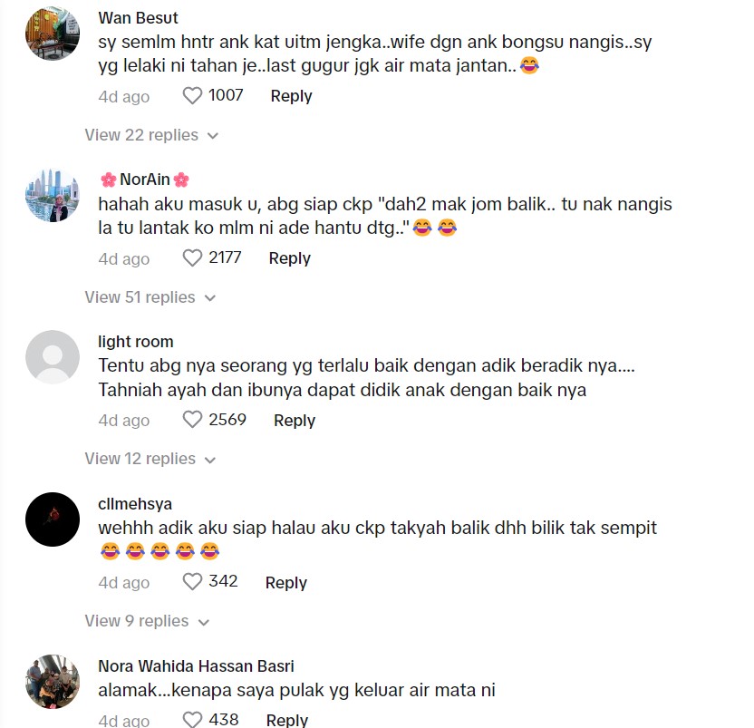 "Adik-adik aku tak menangis pun, adakah diorang tak sayang aku huhu" – Netizen