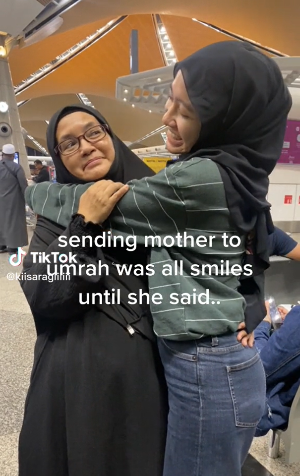 Cover image via @kiisaragiiiiii (TikTok)Kebiasaannya, jemaah umrah yang menjadi tetamu Allah SWT di Tanah Suci dihantar oleh ahli keluarga mereka untuk ke lapangan terbang