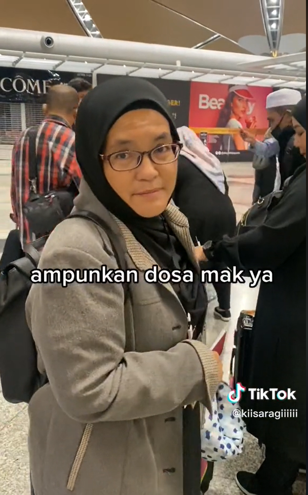 Menerusi video yang dimuat naik oleh @kiisaragiiiiii, kelihatan ibunya sedang dalam perjalanan di lapangan terbang untuk mengerjakan ibadat umrah.