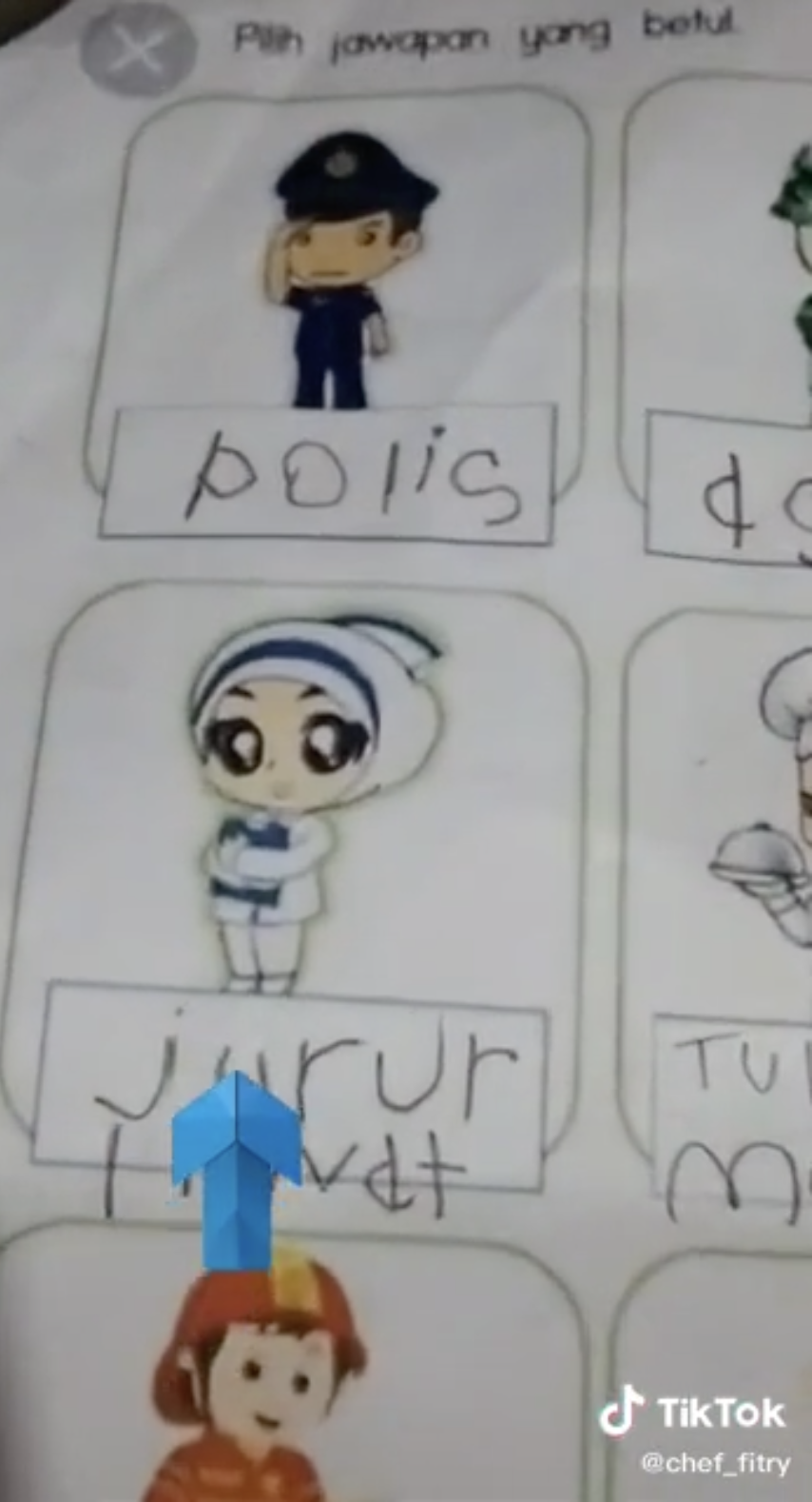 Namun, apa yang lebih menghiburkan adalah ibunya terkejut semasa melihat gambar yang sepatutnya diisi jururwat tetapi anaknya pula menulis sebagai 'juruliwat'.